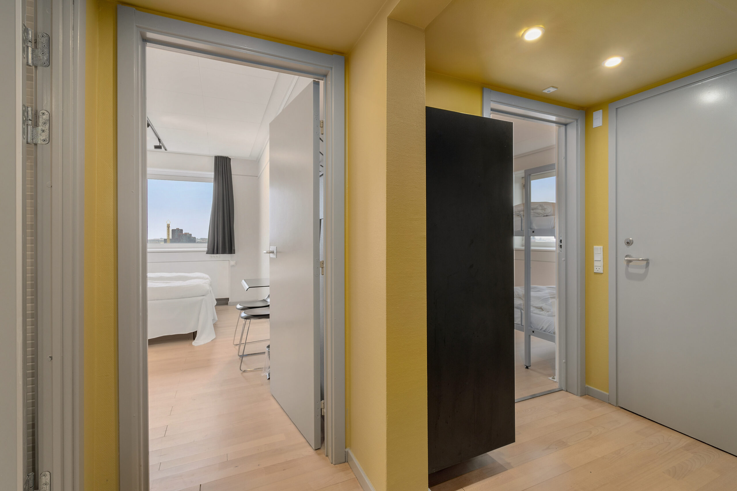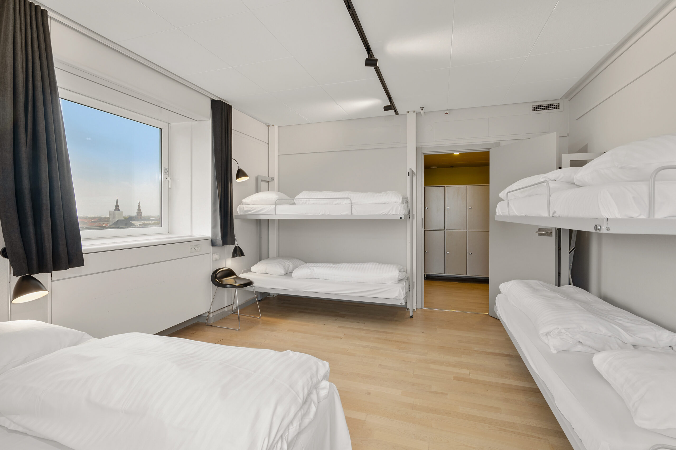 Vi har 1.020 senge fordelt på 192 værelser med privat badeværelse og linned inkluderet. Det gør os til et alletiders alternativ til en hytte. Værelserne er rummelige med plads fra 1-10 personer, og fra mange af dem er der udsigt over København. Vi tilbyder desuden, som det eneste hostel i København, hotellejligheder på 17. etage.