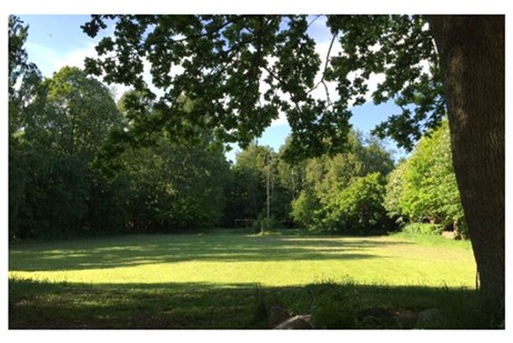 Grunden består af en stor fodboldbane, et bålsted og et mere busket areal til fri leg lige op til stendiget ud mod Hareskoven. Hytten er perfekt til en hyttetur eller afvikling af større arrangementer for institutioner og organisationer, da lejren har en stor boldbane, adgang til skoven samt toilet faciliteter.