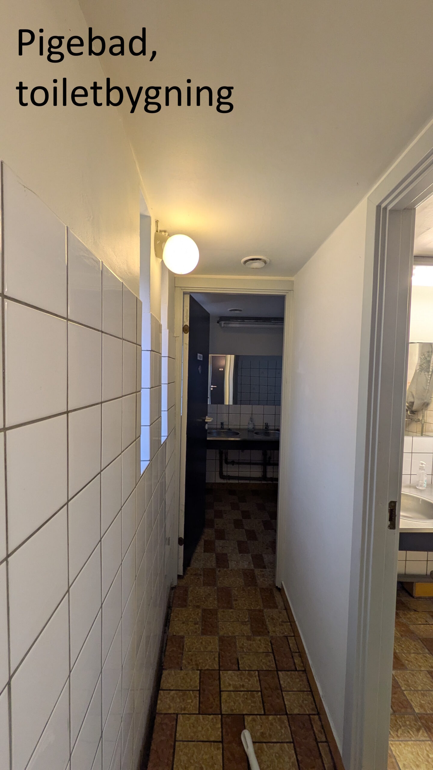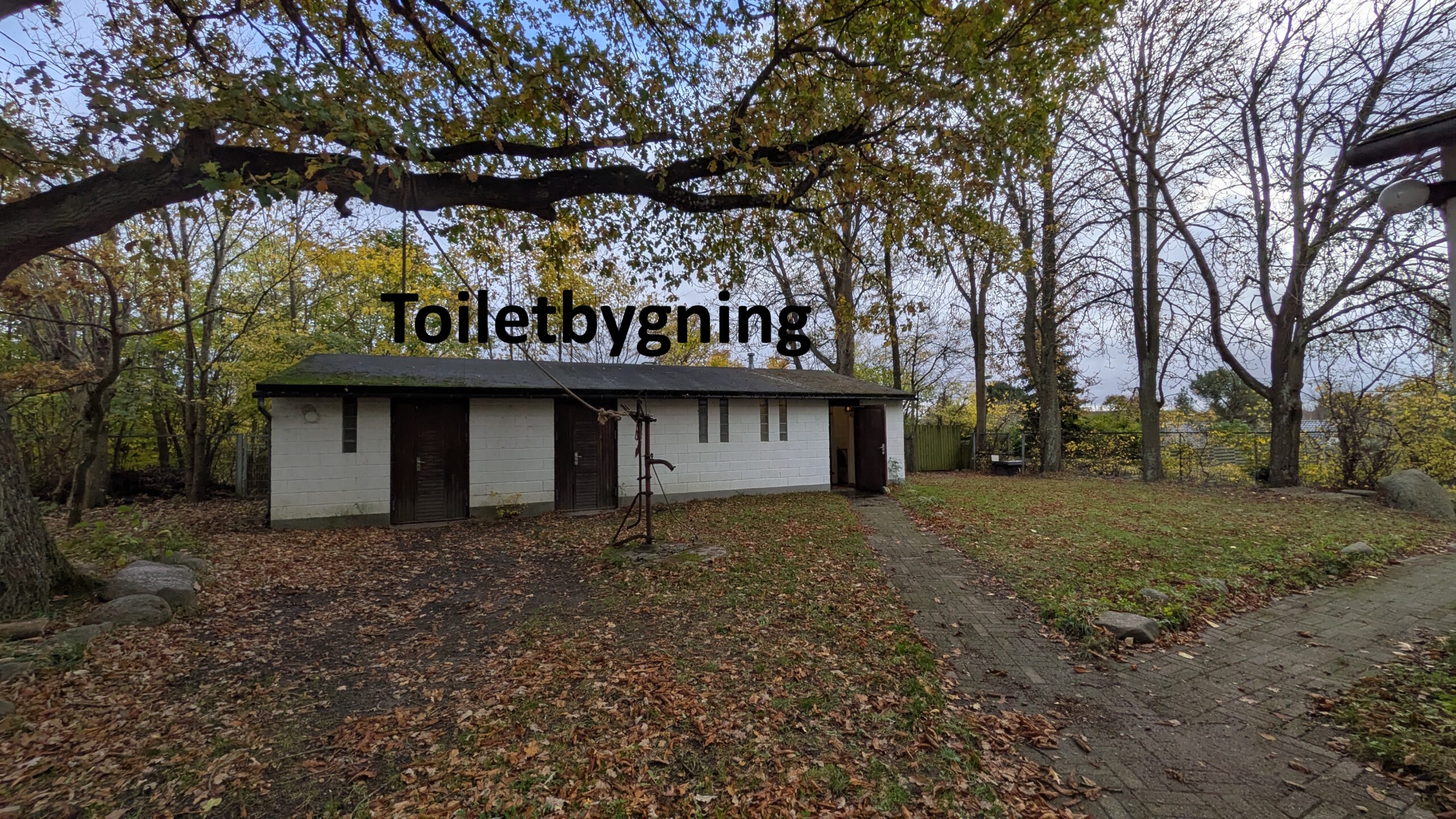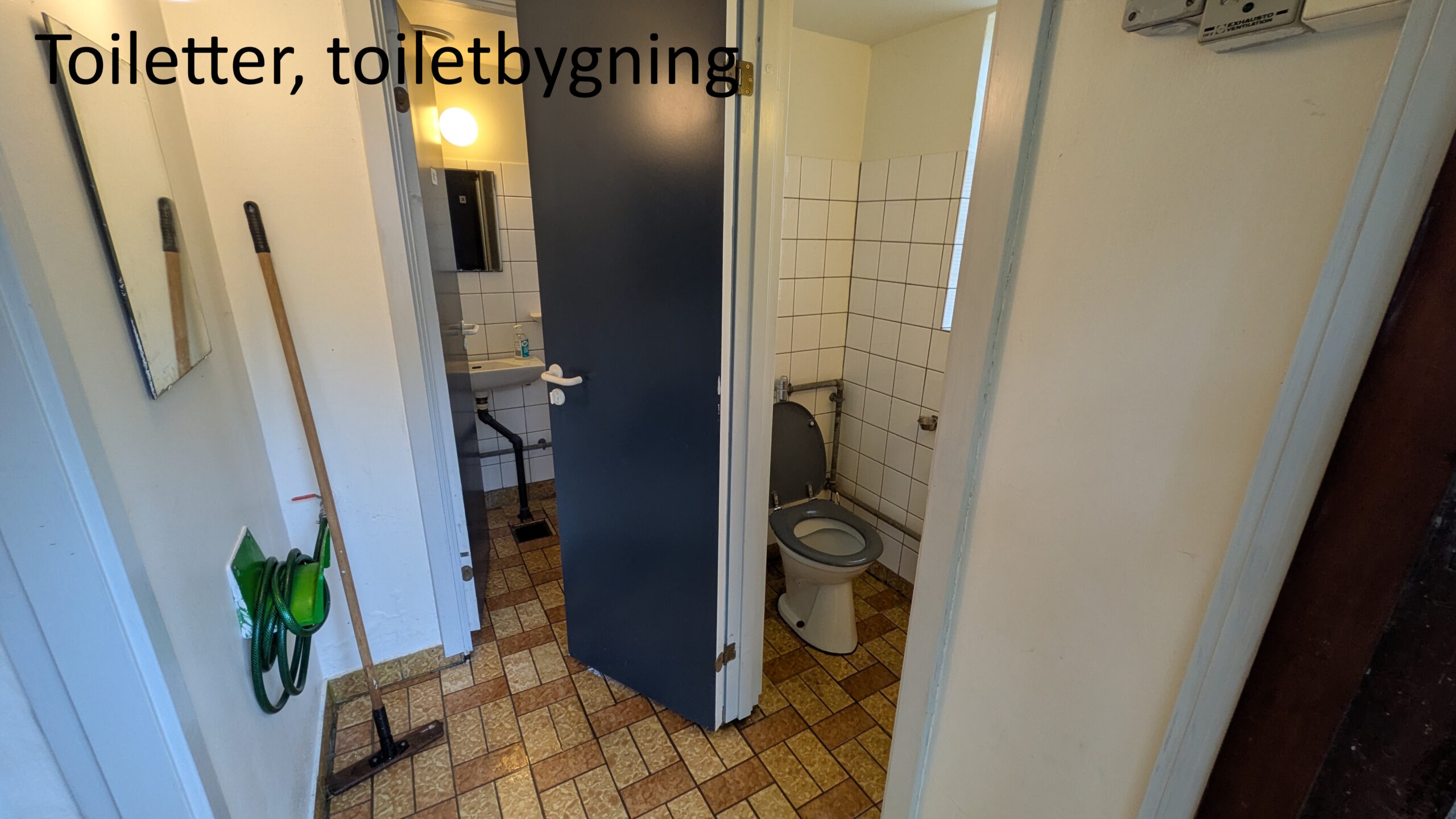 Toiletbygningen – med 2 toiletter og 2 kønsopdelte badeværelser med 3 håndvaske i hver.
