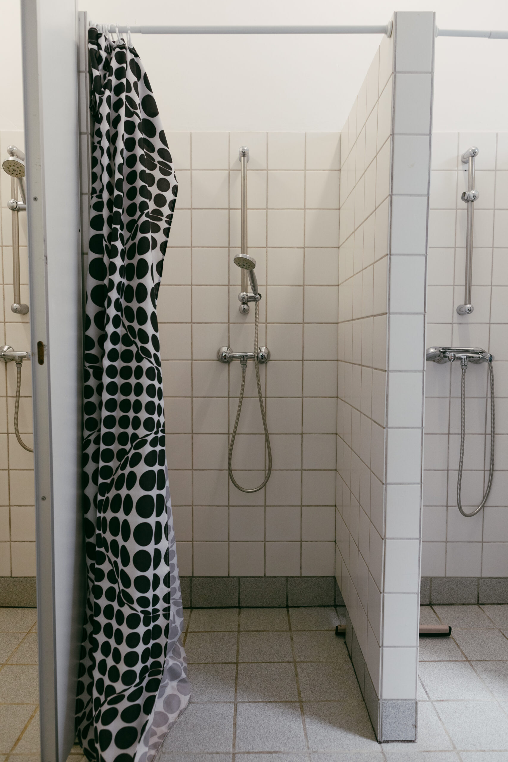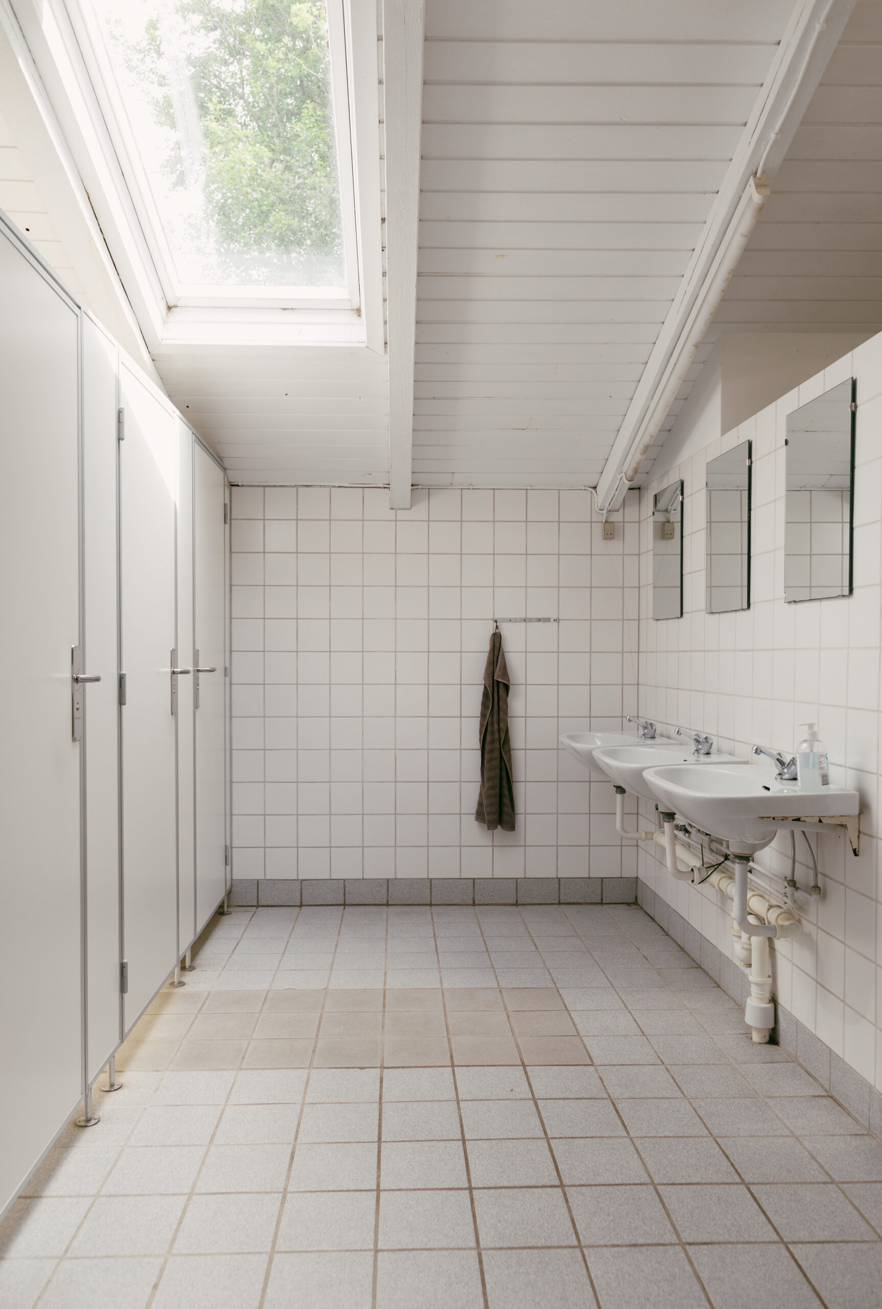 Hytten er en traditionel spejder hytte, med 2 bad rum,, dame og herre, med fire toiletter og bad på hver afdeling.