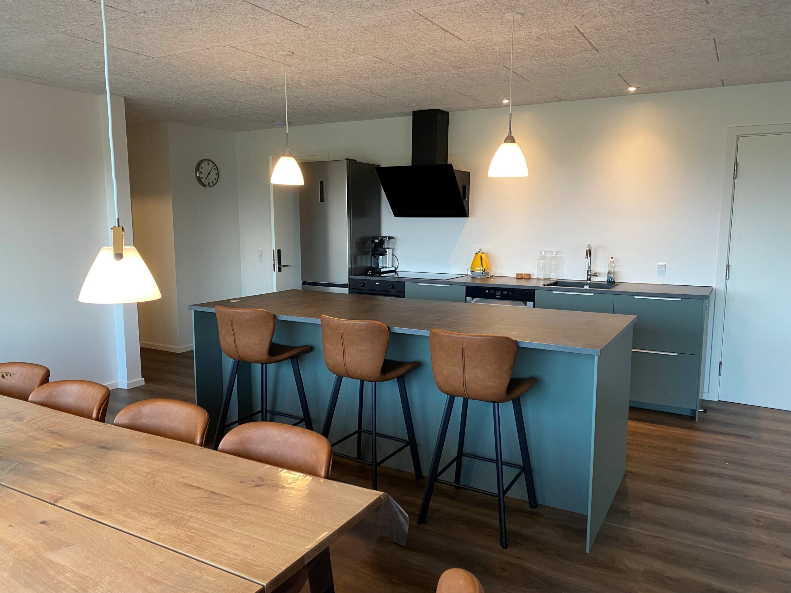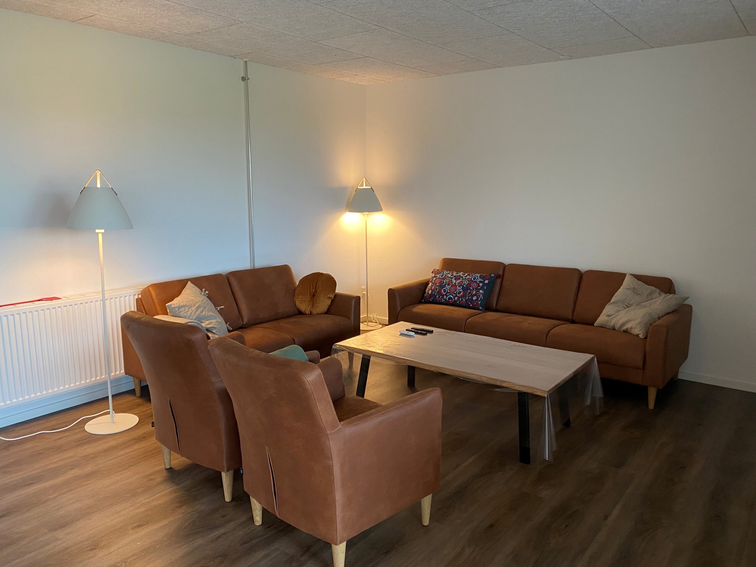 Hver lejlighed rummer 8 sengepladser, eget køkken-alrum samt en opholdsstue med sofagruppe og tv. De blev renoveret i 2022/2023 og har tidligere fungeret som både lærerboliger og elevboliger, da Thorøgaard i 1990’erne husede en produktionsskole.